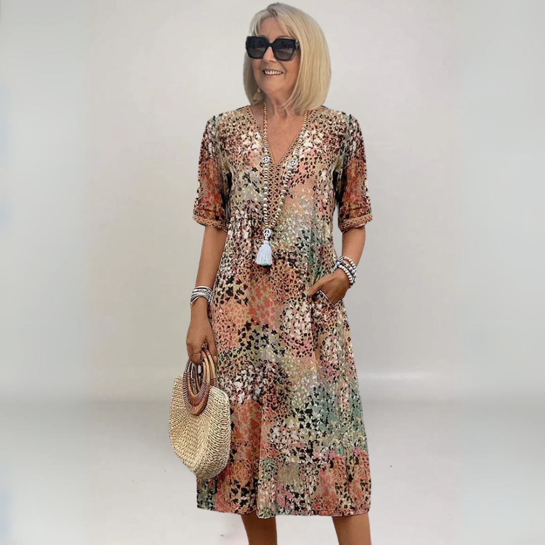 Ivy highlights your curves with a flowing cut, a V-neckline, and an ideal length.