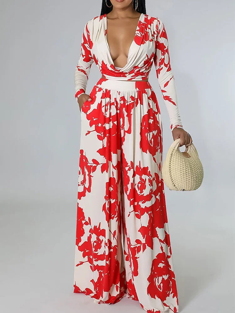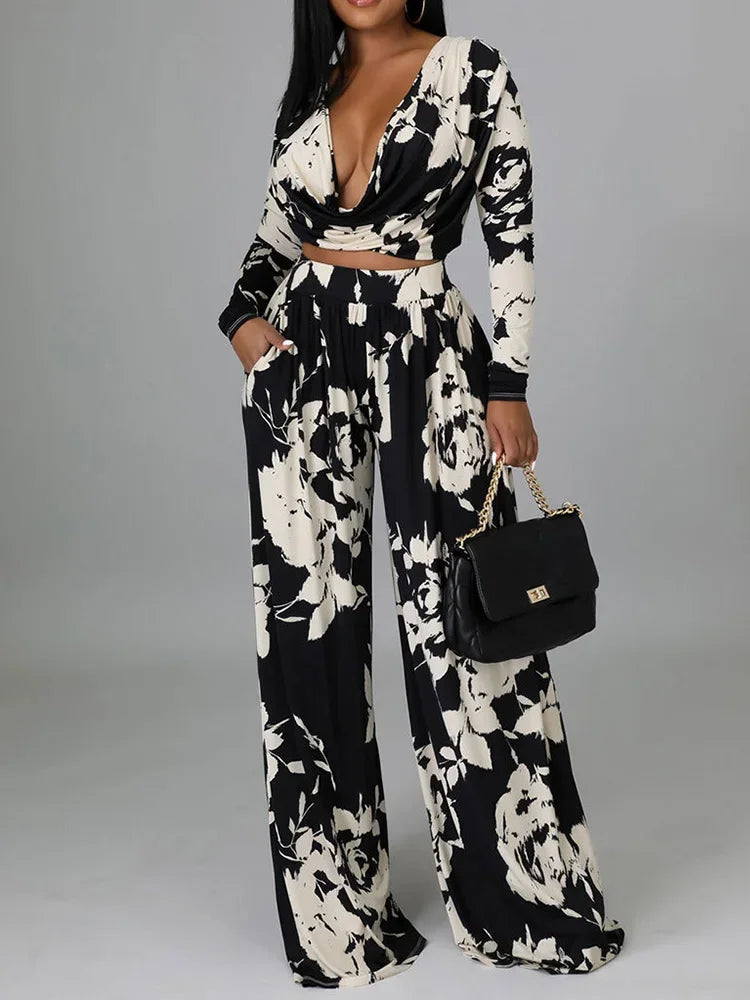 Imagine an outfit that not only highlights your best features but also makes you feel confident and effortlessly beautiful. The deep V-neck adds an elegant and feminine touch, while the wide-leg trousers ensure maximum freedom of movement. The lightweight fabric hugs your body, creating a feeling of luxury wherever you go.